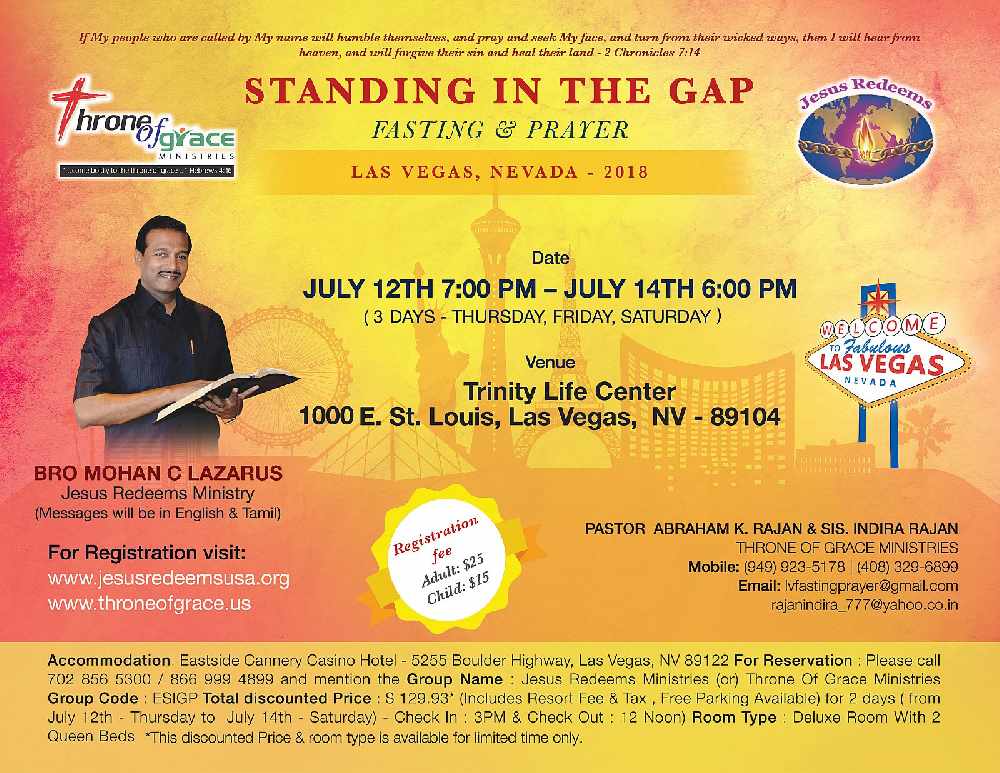Praying for our country (USA) and our city Las Vegas. The event is led by renowned evangelist from South India Bro. Mohan C. Lazarus (Jesus Redeems Ministries).
