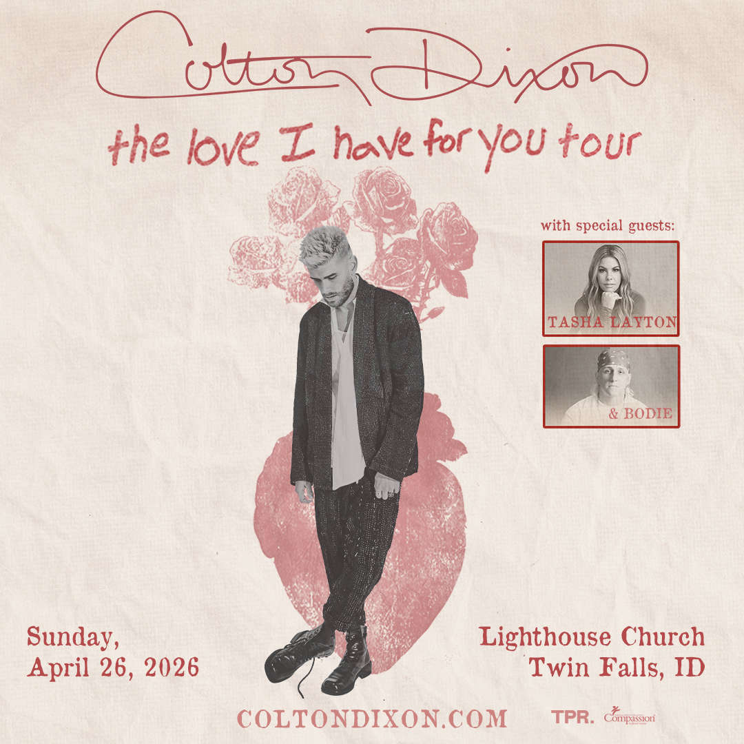 Get ready for an unforgettable night of music and inspiration as Colton Dixon’s The Love I Have For You Tour hits 15 cities this spring! Colton brings his signature energy and powerful vocals to the stage, sharing new music along with fan favorites. He’s joined by special guests Tasha Layton and bodie, making this a stacked lineup of worship and moments you’ll remember long after the night is over. Don’t miss it!
